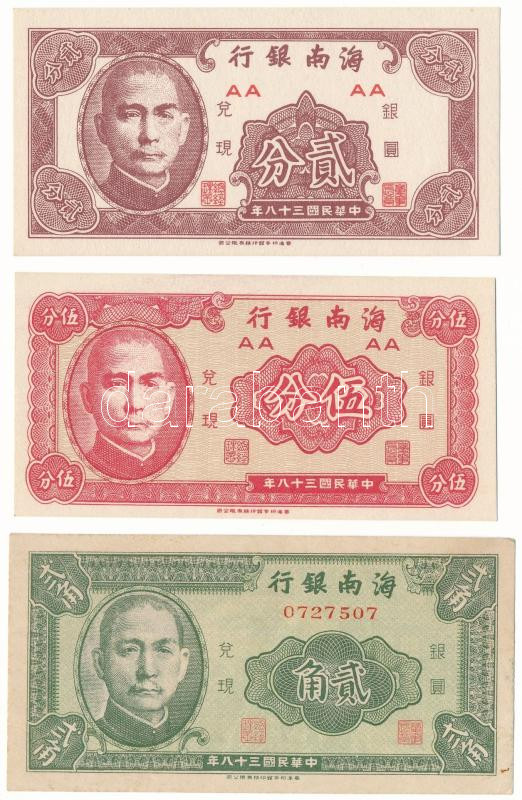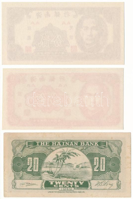 Kína / Hajnan Tartomány DN (1949) 2F - 5F - 20F T:UNC,XF China / Haina... https://www.darabanth.com/de/496-Fernauktion/496.0/Numismatik/Weltweit-Banknoten~1500015/Kina-Hajnan-Tartomany-DN-1949-2F-5F-20F-TUNC-XF-China-Hainan-Province-ND-1949-2-Fen-~II3247468