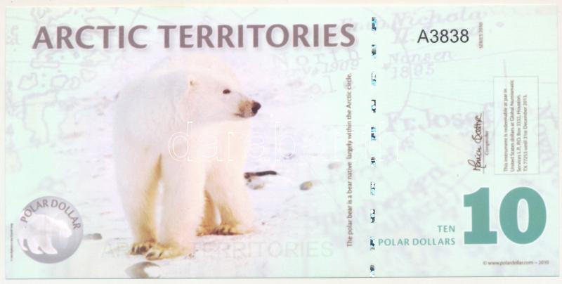 Beschreibung: Sarkvidéki területek 2012. 10$ fantázia bankjegy "A3838" T:UNC