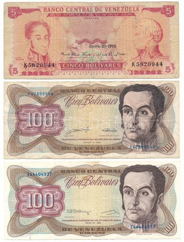 Venezuela 1970. 5 Bolivares + 1989-1992. 100 Bolivares (2xdiff) C:F