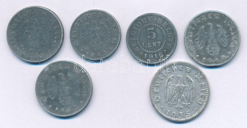 Belgium / German occupation 1916. 5 Cents Zn + German Third Reich 1935G 50 Pfennigs Al + 1940-1943. 10 Pfennigs Zn (3xdiff) + 1943A 5 Pfennigs Zn C:F