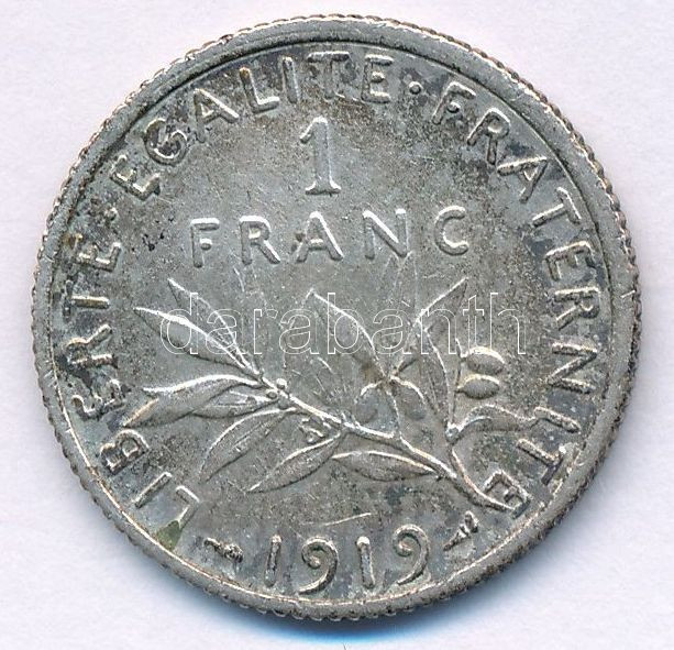 Franciaország 1919. 1Fr Ag T:AU patina France 1919. 1 Franc Ag C:AU patina Krause KM#844.1