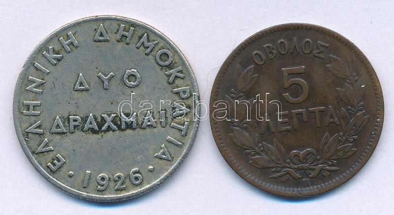 Görögország 1869. 5L bronz + 1926. 2D Cu-Ni T:VF patina Greece 1869. 5 Lepta bronze + 1926. 2 Drachma Cu-Ni C:VF patina Krause KM#70, KM#42