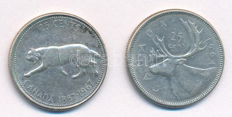 Kanada 1964. 25c Ag + 1967. 25c Ag T:XF,VF Canada 1964. 25 Cents Ag + 1967. 25 Cents Ag C:XF,VF Krause KM#52, KM#68