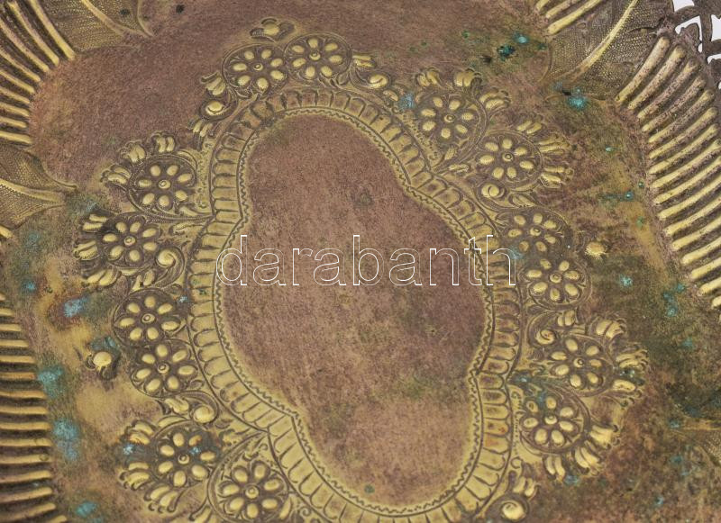 Beschreibung: Régi angol ezüstözött alpakka kínáló, áttört és domborított mintával, jelzett, patinás, 28x21 cm