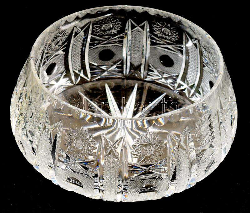 Beschreibung: Ólomkristály kínáló, jelzés nélkül, csiszolt mintával, d: 18 cm, m: 8,5 cm