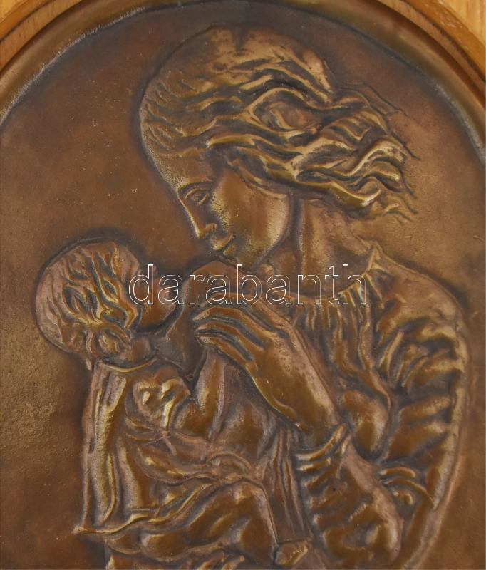 Szabolcs Péter (1942-): Madonna. Bronz. Zárható fa keretben, Jelzett. 16x20 cm