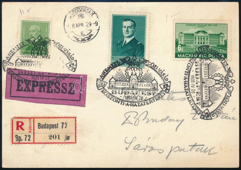 1939 Budapest helyi ajánlott expressz levelezőlap https://www.darabanth.com/de/496-Fernauktion/496.0/Philatelie-und-Postgeschichte-Ungarn/Pengo-Periode-1926-1944~1000049/1939-Budapest-helyi-ajanlott-expressz-levelezolap~II3295584