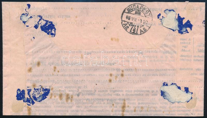 1946 (21. díjszabás) Nyomtatvány darab 100 Milliárd P négyescsíkkal bé... https://www.darabanth.com/de/496-Fernauktion/496.0/Philatelie-und-Postgeschichte-Ungarn/Zweite-Inflationsperiode-1945-1946~1000053/1946-21-dijszabas-Nyomtatvany-darab-100-Milliard-P-negyescsikkal-bermentesitve~II2756503