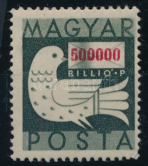 1946 Billiós 500.000P rákel csíkkal / Mi 932 with paint stripe https://www.darabanth.com/de/496-Fernauktion/496.0/Philatelie-und-Postgeschichte-Ungarn/Zweite-Inflationsperiode-1945-1946~1000053/1946-Billios-500000P-rakel-csikkal-Mi-932-with-paint-stripe~II3005702