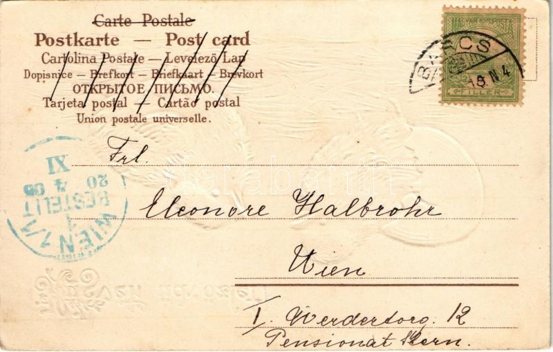 1905 Húsvéti üdvözlet / Easter greeting card with chicken. Emb. litho https://www.darabanth.com/de/498-Fernauktion/498.0/Ansichtskarten/GruC39Fkarten-Feste~3000106/1905-Husveti-udvozlet-Easter-greeting-card-with-chicken-Emb-litho~II2161567