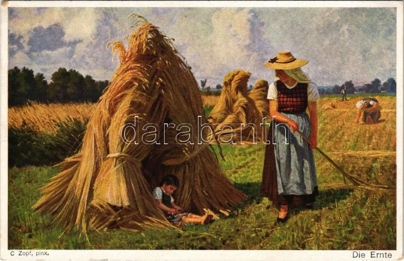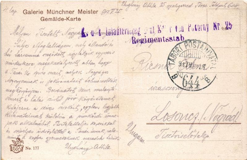 1917 Die Ernte. Galerie Münchner Meister Gemälde-Karte. E.M.M. No. 177. s: C. Zopf + "K.u.K. Infanterieregiment Edler von Pokorny Nr. 25. Regimentsstab" "Tábori Postahivatal 644"