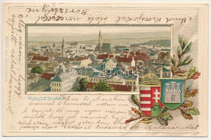 1902 Kolozsvár, Cluj; látkép. Boskovitz Lajos kiadása, szecessziós, ma... https://www.darabanth.com/de/498-Fernauktion/498.0/Ansichtskarten/Siebenburgen~3000006/1902-Kolozsvar-Cluj-latkep-Boskovitz-Lajos-kiadasa-szecesszios-magyar-cimeres-dombornyomo~II3395424