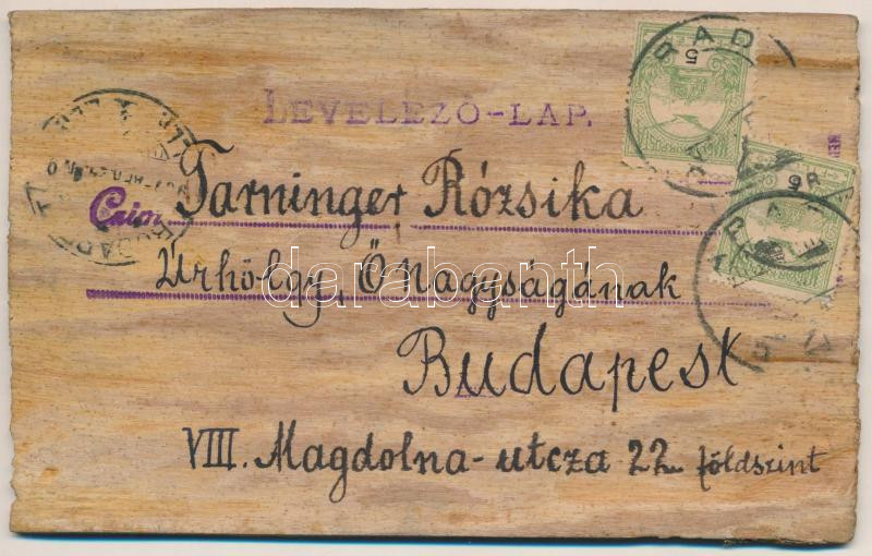 1907 Arad, Andrássy tér, Római katolikus templom, Csanádi palota, Városháza, Vértanúk szobra. Egyedi készítésű fakéreg képeslap / square, Catholic church, railway palace, town hall, monument. Art Nouveau, floral - custom postcard made out of tree bark