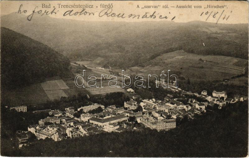 1911 Trencsénteplic, Trencianske Teplice; Kilátás a Szarvasról. Kiadás... https://www.darabanth.com/de/498-Fernauktion/498.0/Ansichtskarten/Slowakei~3000007/1911-Trencsenteplic-Trencianske-Teplice-Kilatas-a-Szarvasrol-Kiadasa-Wertheim-Zsigmond-Aus~II3018353