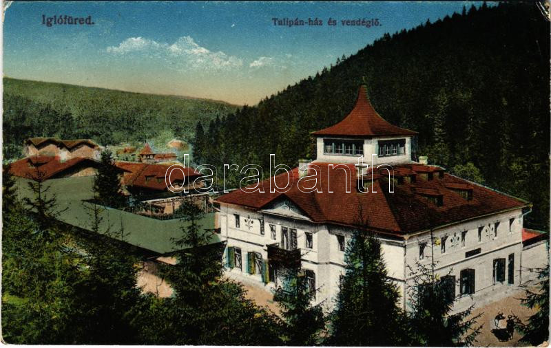 1918 Iglófüred, Bad Zipser Neudorf, Spisská Nová Ves Kupele, Novovesské Kúpele; Tulipán ház és vendéglő. Ferencz D. kiadása / spa, villa, restaurant (EK)