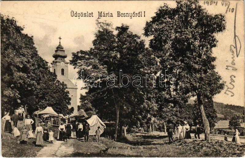Beschreibung: 1904 Máriabesnyő (Gödöllő), kegytemplom. Divald Károly 502. sz. (szakadás / tear)