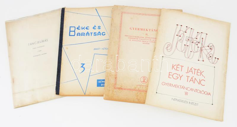 3 db tánc könyv: Táncjelírás, Laban-Kinetográfia; Béke és Barátság. Baárti népek táncai. Bp., 1964., Két játék, egy tánc, gyermektáncantológia '81. Népművelési Intézet.