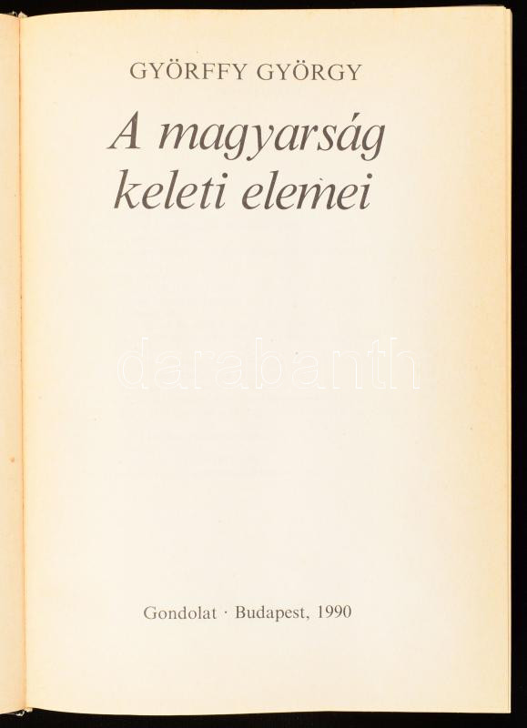 Györffy György: A magyarság keleti elemei. Bp., 1990, Gondolat, 324+(4) p. Első kiadás. Kiadói kartonált papírkötés, kissé viseltes borítóval, átlátszó műanyag védőborítóban.
