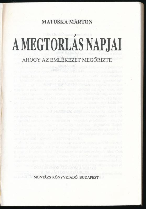 Matuska Márton: A megtorlás napjai. Bp., 1990, Montázs. Kiadói papírkö... https://www.darabanth.com/de/498-Fernauktion/498.0/Bucher/Bucher-Geschichte~2000124/Matuska-Marton-A-megtorlas-napjai-Bp-1990-Montazs-Kiadoi-papirkotes~II3096019