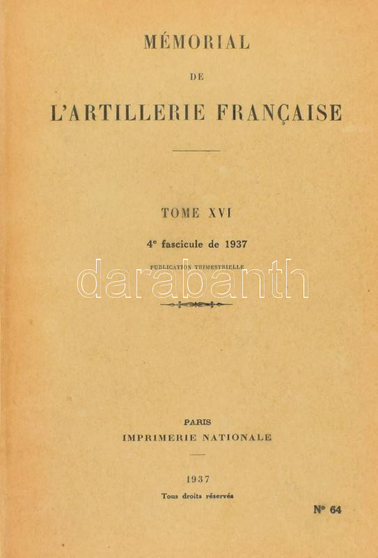 Mémorial de l'artillerie française, Volume 16, Parts 1-2 ? - 1937... https://www.darabanth.com/de/498-Fernauktion/498.0/Bucher/Bucher-Militaria~2000125/Memorial-de-lartillerie-franC3A7aise-Volume-16-Parts-1-2-1937-804-1009p-plus-76p-plus-5-p-FelvC3~II3367945
