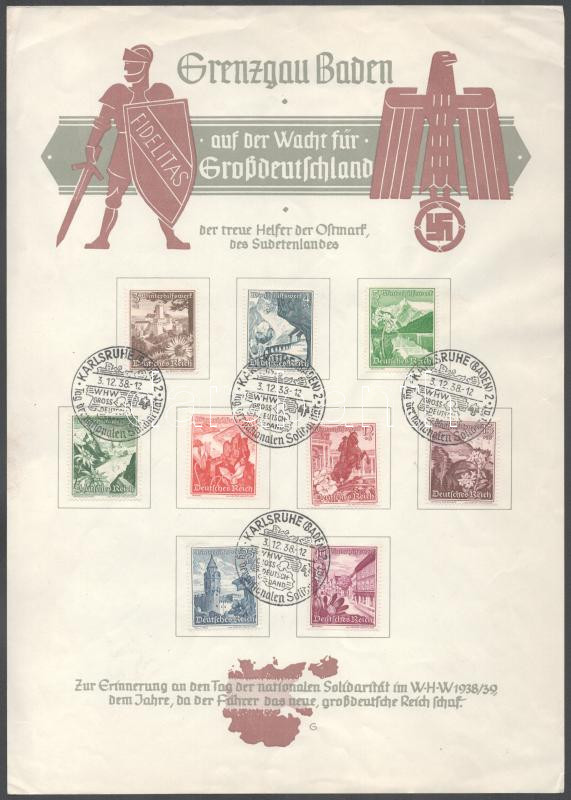 Deutsches Reich 1938 Mi 675-683 sor emléklapon, "KARLSRUHE (BADEN... https://www.darabanth.com/de/498-Fernauktion/498.0/Erlesene-Lose-und-Sammlungen-Ausland/Einzelne-Gebotslose-Weltweit~2500009/Deutsches-Reich-1938-Mi-675-683-sor-emleklapon-KARLSRUHE-BADEN-ritka~II3400687