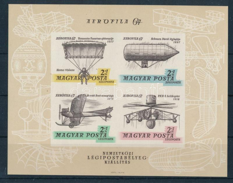 1967 Aerofila I. vágott blokk (6.500) https://www.darabanth.com/de/498-Fernauktion/498.0/Erlesene-Lose-und-Sammlungen-Ungarn/Ungezahnte-Satze-Blocke-Gebotslose~2500002/1967-Aerofila-I-vagott-blokk-6500~II3402005