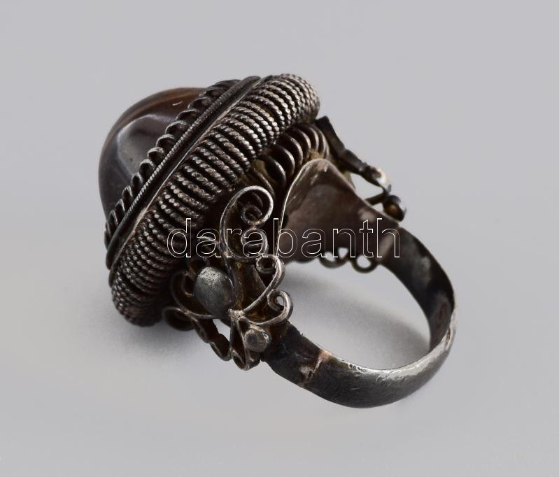 Antik ezüst (Ag) gyűrű, tigriskő berakással, m: 48, jelzett, bruttó 11... https://www.darabanth.com/de/498-Fernauktion/498.0/Juwellen-und-Kunstobjekte-aus-Edelmetall/Juwellen-und-Kunstobjekte-aus-Edelmetall~500002/Antik-ezust-Ag-gyuru-tigrisko-berakassal-m-48-jelzett-brutto-11g~II3396518