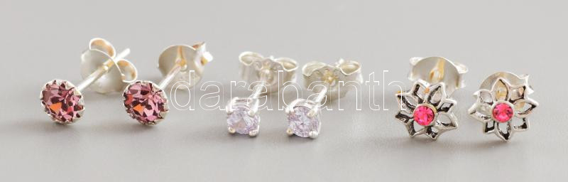 Beschreibung: Ezüst(Ag) 3 pár köves fülbevalópár, jelzett, bruttó: 1,4 g