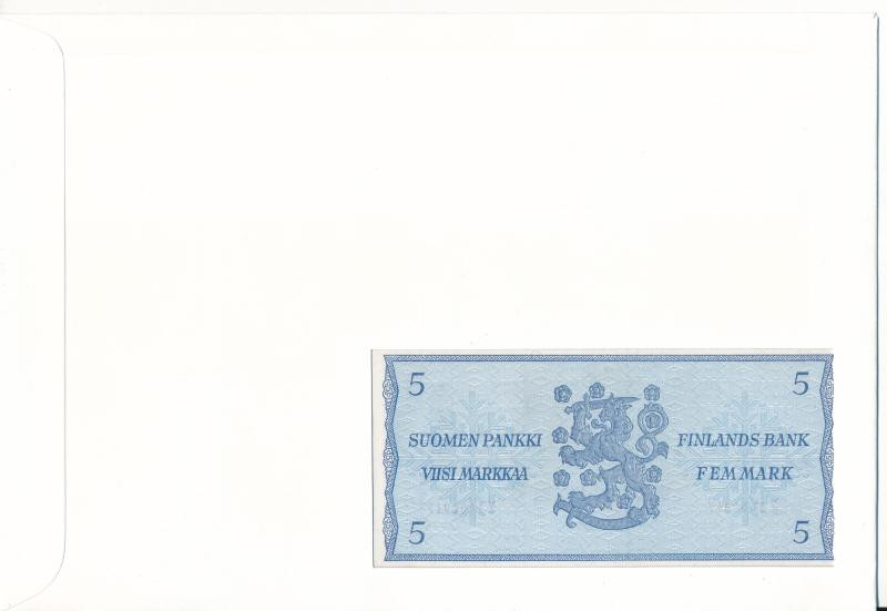 Finnország 1963. 5M felbélyegzett borítékban, bélyegzéssel, német nyelvű leírással T:UNC Finland 1963. 5 Markkaa in envelope with stamp and cancellation, wih German description C:UNC