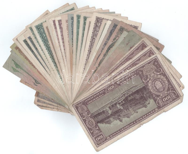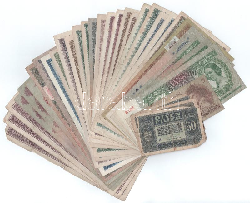 Beschreibung: Vegyes 1920-1946. 50f - 10.000BP (34db, 22xklf) T:F,VG, folt, firka, közte szép papír