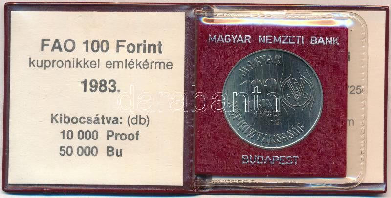 1983. 100Ft Cu-Ni "FAO - Több gabonát a világnak" műbőr tokb... https://www.darabanth.com/de/498-Fernauktion/498.0/Numismatik/Ungarische-Munzen-und-Munzen-mit-ungarischem-Munzzeichen~1000098/1983-100Ft-Cu-Ni-3Cem3EFAO-Tobb-gabonat-a-vilagnak3Cem3E-mubor-tokban-tanusitvannyal-TUN~II3276452