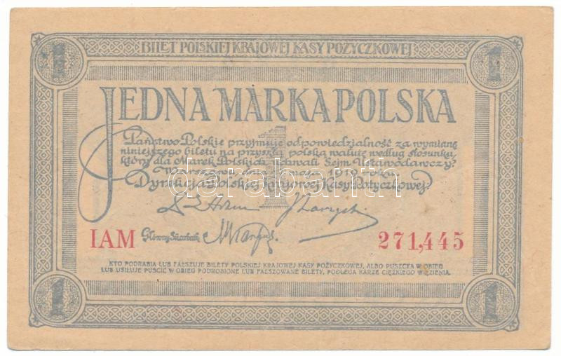 Lengyelország 1919. 1M "IAM 271,445" T:AU,XF hajtatlan, de sarokhajlások / Poland 1919. 1 Marka "IAM 271,445" C:AU,XF unfolded, but with corner folds