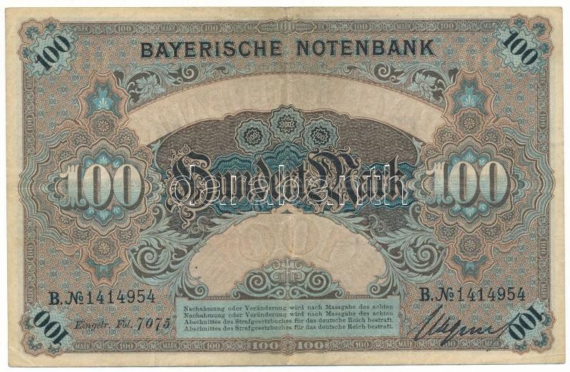 Német Birodalom / Bajorország 1900. 100M vízjeles papíron T:F erős pap...