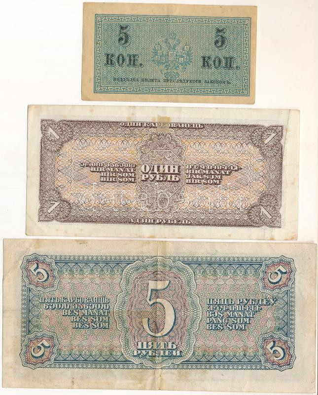 Russia 1... https://www.darabanth.com/de/498-Fernauktion/498.0/Numismatik/Weltweit-Banknoten~1000103/Oroszorszag-1915-5k-plus-Szovjetunio-1938-1R-plus-5R-TF-tulyuk3Cbr-3E-Russia-1915-5-Kopecks-plus-Sovi~II3394065