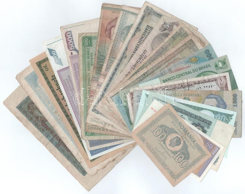 Vegyes 20db-os külföldi bankjegy tétel, közte Románia 1945. 100L + 5000L, stb. T:F,VG, közte 3db AU