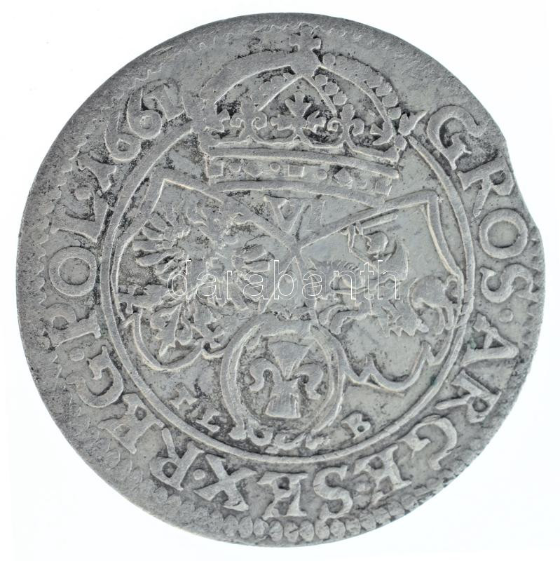 Lengyel-Litván Nemzetközösség 1661TL-B 6gr Ag "II. János Kázmér" Krakkó (3,45g) T:XF,VF