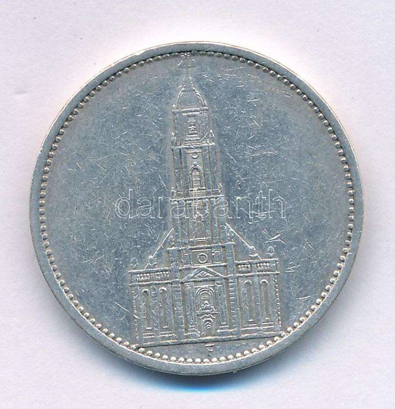 German Third Reich 1934F 5 Reichsmark Ag "Garnisonkirche" C:XF,VF