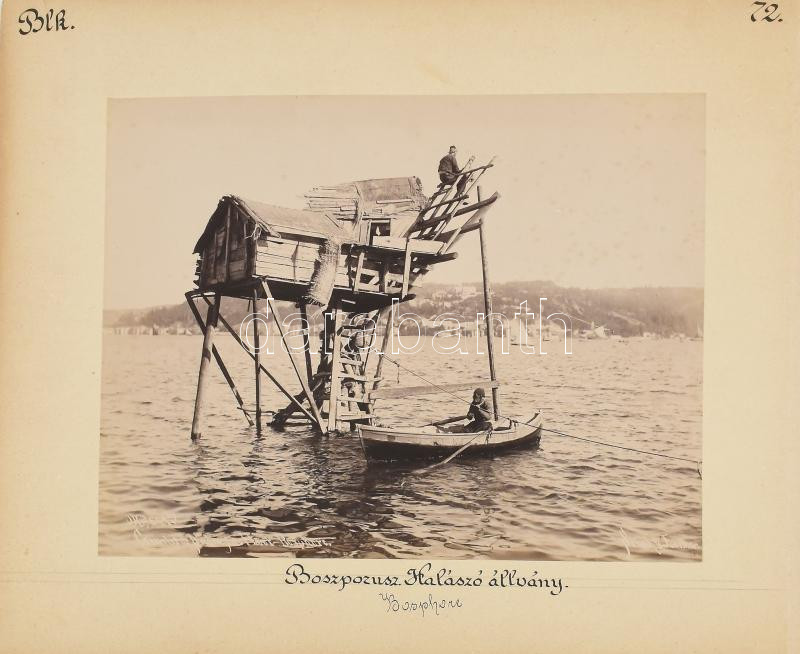 cca 1900 Therapia a Boszporusz mellett Loreley német hajóállomás / Boszporusz halászó állvány kétoldalas fotó kartonon Sébah & Joaillier jelzett felvétele magyar utazó feliratozásával 36x30 cm /