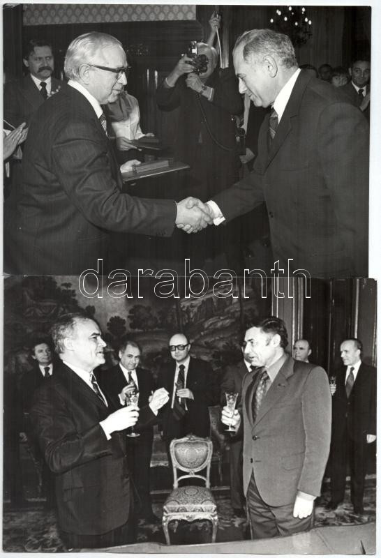 Beschreibung: cca 1980 Vegyes feltehetőleg politikai esemény fotói, 2 db, az egyiken az emberek között Biszku Bélával, 17x24 cm és 18x24 cm között