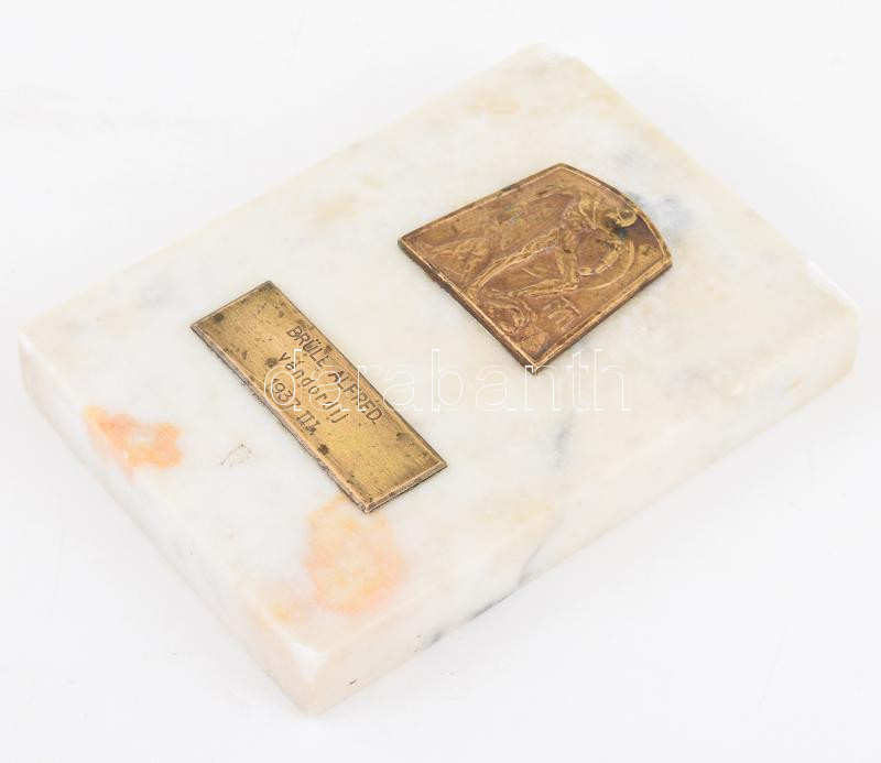 Beschreibung: 1937 Körmendi-Frim Jenő (1886-1959): MTK sportplakett Brüll Alfréd (1876-1944) sportmecénás, holokausztáldozat részére, alabástrom alapon, 14×10 cm