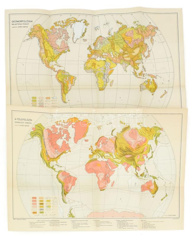 A földfelszín szerkezeti térképe + Geomorfológiai relieftípus-térkép. Szerk.: Dr. Pécsi Márton, rajzolta: Szilágyi András. Bp., Offset-ny., jó állapotban, 33x47,5 cm