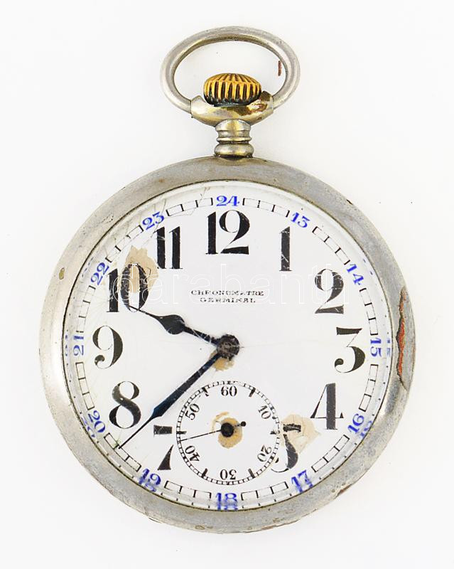 Beschreibung: Chronométre Germinal Regulator mechanikus zsebóra, szépen jár d:53 mm