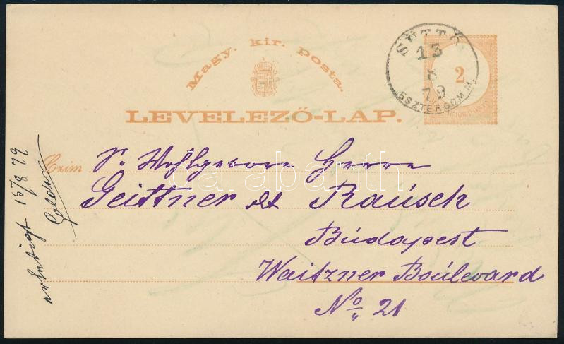 1879 2kr díjjegyes levelezőlap "SÜTTŐ / ESZTERGOM M." - Buda... https://www.darabanth.com/de/498-Fernauktion/498.0/Philatelie-und-Postgeschichte-Ungarn/Ausgaben-1874-1899~2500035/1879-2kr-dijjegyes-levelezolap-SUTTO-ESZTERGOM-M-Budapest~II3256271