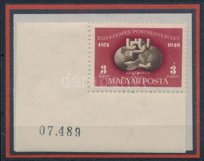1950 UPU blokkból kivágott ívsarki fogazott bélyeg számvízjellel. Nagy... https://www.darabanth.com/de/498-Fernauktion/498.0/Philatelie-und-Postgeschichte-Ungarn/Ausgaben-1946-1956~2500051/1950-UPU-blokkbol-kivagott-ivsarki-fogazott-belyeg-szamvizjellel-Nagyon-ritka~II3271575