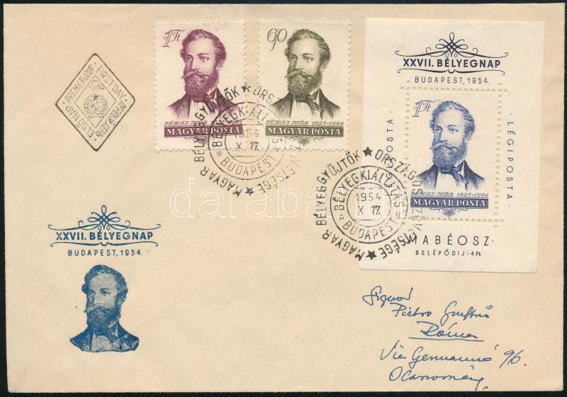 1954 Jókai sor és blokk Rómába címzett FDC-n https://www.darabanth.com/de/498-Fernauktion/498.0/Philatelie-und-Postgeschichte-Ungarn/Ausgaben-1946-1956~2500051/1954-Jokai-sor-es-blokk-Romaba-cimzett-FDC-n~II3401616