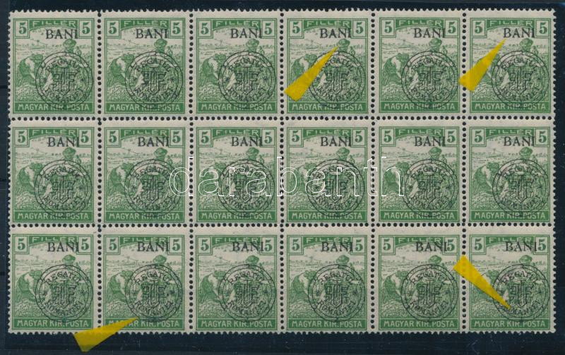 Beschreibung: Kolozsvár 1919 Arató 5f 18-as tömb több lemezhibával a felülnyomatban, Bodor vizsgálójellel
