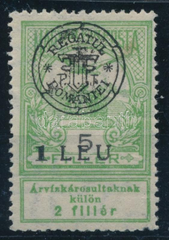 Beschreibung: Kolozsvár 1919 Árvíz (I.) 5f lemezhibával, Bodor vizsgálójellel