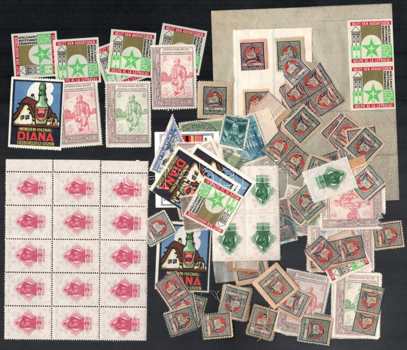 Beschreibung: Levélzáró és reklámbélyeg tétel, benne okmánybélyeg, némi filatélia több mint 100 db