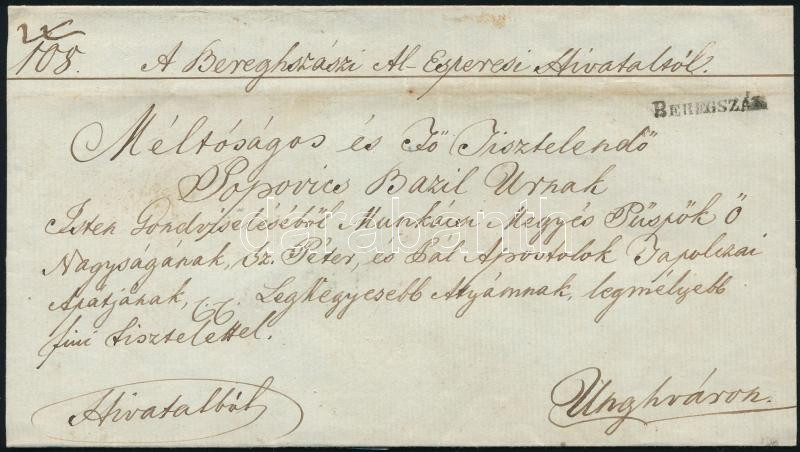 Beschreibung: 1847 Ex offo levél "BEREGSZÁZ" - Ungvár