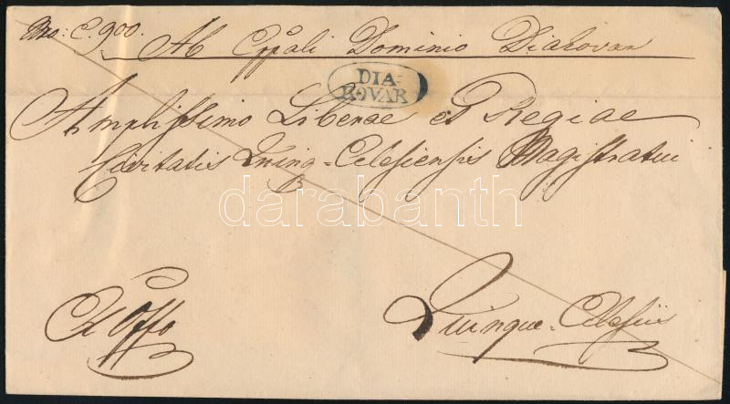 Beschreibung: ~1845 Ex offo levél "DIA-/KOVAR" - Fünfkirchen